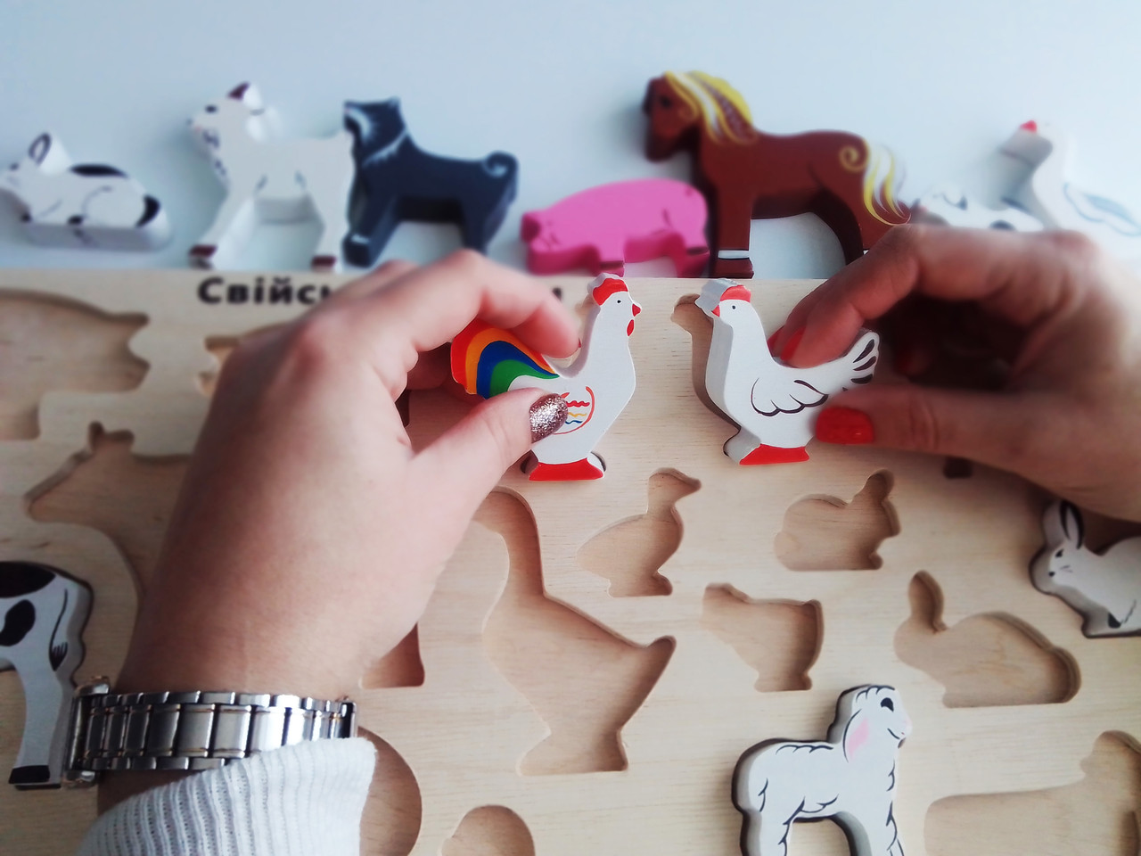 Рамка вкладиш «Свійські тварини» від тм «HEGA» змінить Ваше уявлення про вкладиші на 100%. Основна відмінність – усі тварини – 36 шт. – повноцінні об'ємні фігурки, розфарбовані з усіх боків. Отже, перед Вами повний список 12 сімей домашніх тварин України. У кожній сім'ї є тато, мама і дитинча. Усі тварини пропорційно співмірні один з одним та іншими серіями рамок тм «HEGA». Усі тварини мають природний реалістичний розпис. Лаки і фарби - тільки безпечний сертифікований європейський акрил, а це значить, що це дає можливість належної гігієнічної обробки всього набору. Набір призначений для використання в якості ігрового матеріалу для застосування в освітній роботі з дітьми раннього і дошкільного віку в умовах родини та закладу дошкільної освіти, також з учнями початкової школи. Як ігровий засіб вони знадобляться в ігровій, театралізованій, навчально-пізнавальній, художньо-естетичній, руховій, комунікативно-мовленнєвій та інших специфічних видів дитячої діяльності. Підіб'ємо підсумки: мама грає, займається логопед, веде заняття дитячий психолог, ідеально підходять для пісочної терапії і це краще наповнення дитячої ігрової зони як дошкільнят, так і учнів-початківців.