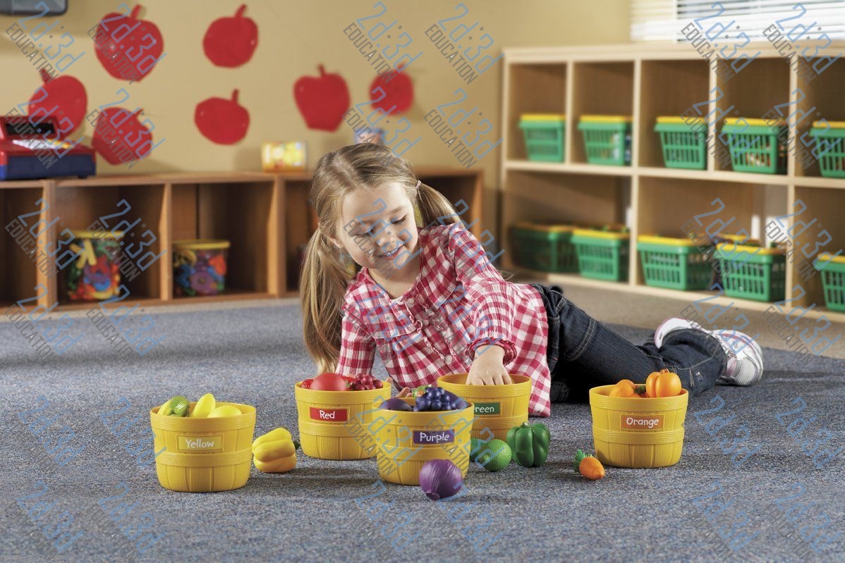Набір для розвитку навичок розпізнавання та сортування кольорів. Чудово підходить для творчих ігор та уроків зі здорового харчування.До набору входять овочі та фрукти реалістичного вигляду та кошики з наклейками для маркування.